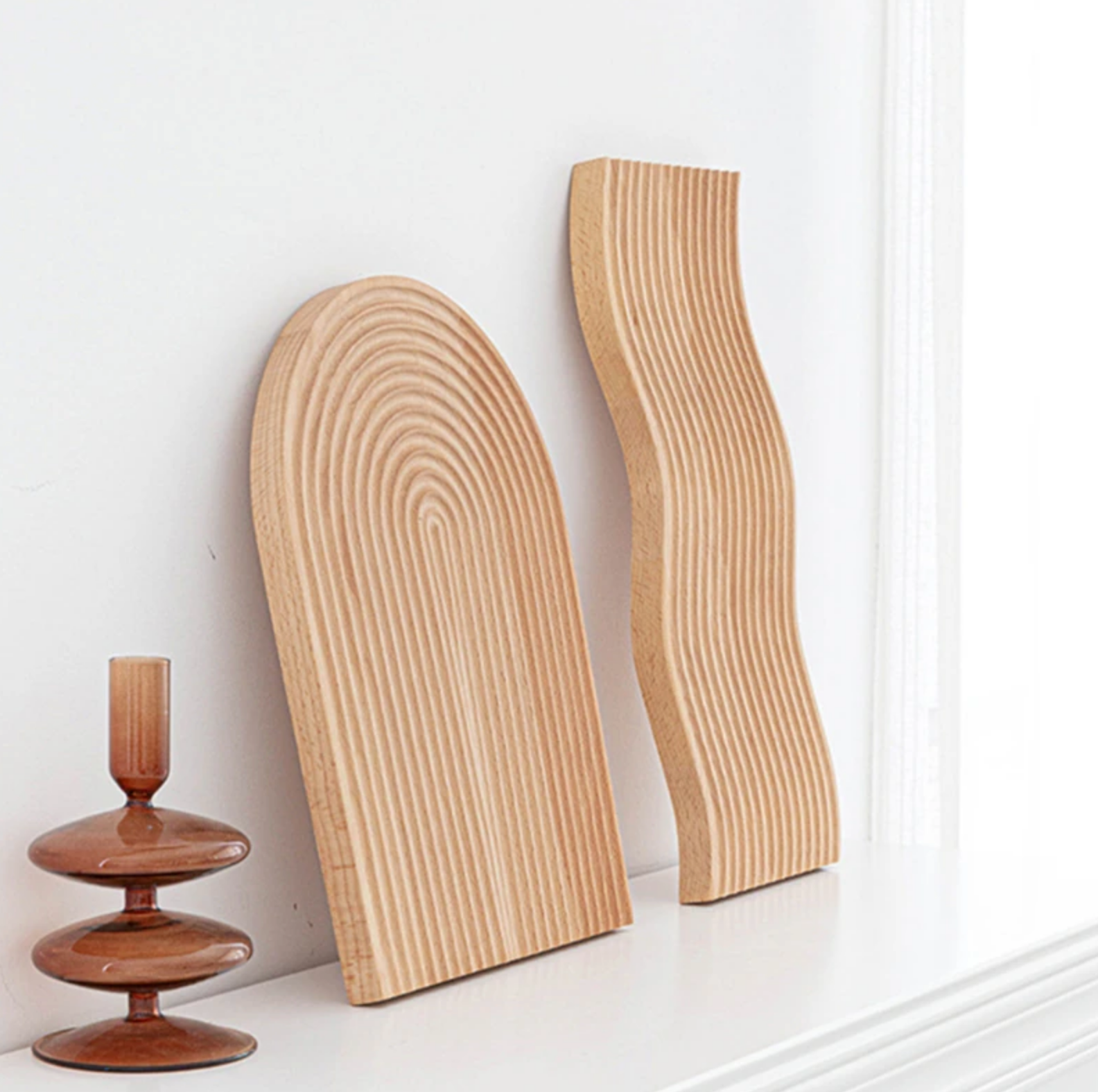 Beautiful wooden serving trays upgrade your coffee bar, dining table, or any space, really! Available in an arched, waves, or linear grooved design. Modernize your space with this fun take on the essential wooden tray.