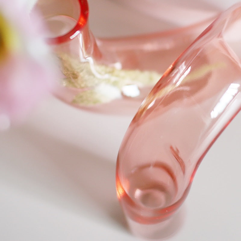 The With a Twist Candle Holder features a stylish curved glass design, perfect for adding a touch of glamour to any space. It can hold a tapered candle or a single bud and comes in six tints.